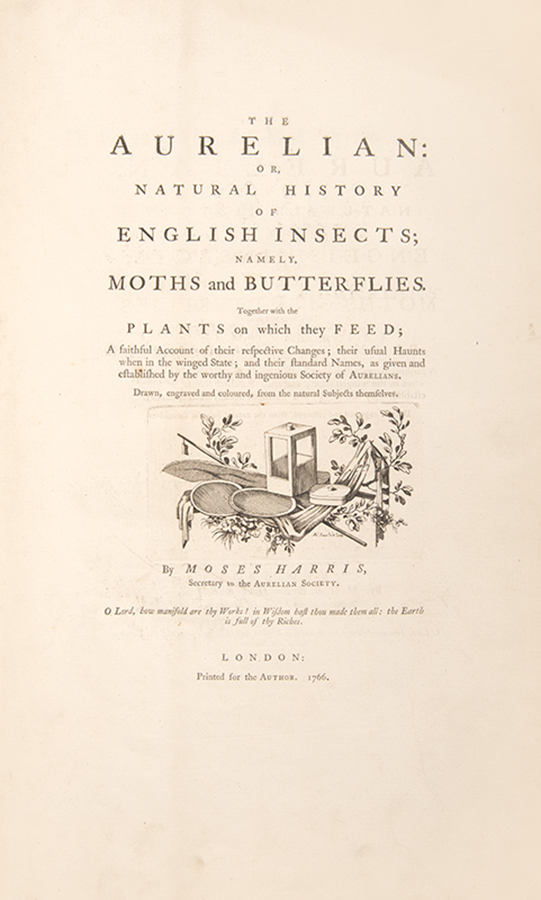 HARRIS, Moses. The Aurelian: or, natural history of British insects, namely, moths and butterflies. Together with the plants on which they feedPublished by London for the Author 1773, 1766
