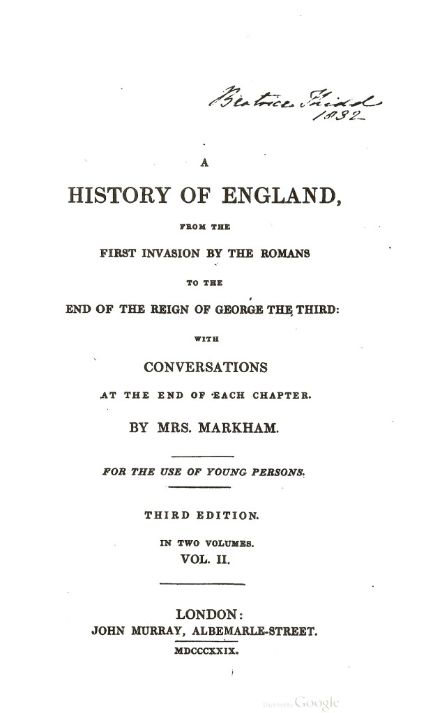 Roake & Varty were publishers and booksellers / stationers in London from about 1829-1842. They published a number of political, religious, and educational books – so Charles could have been either buying and reading for his own edification or, as Hazel suggests, purchasing books for the Chawton and Alton schools. He mentions supplying the teachers with various texts. [According to Hazel, Charles apparently was in the habit of turning up in the classrooms unannounced to examine the pupils! Every teacher’s nightmare!…] There are no Roake & Varty books at GPL, but here is a title page of one such published by them: