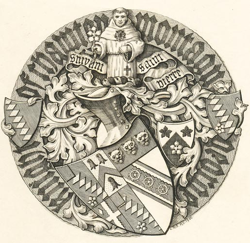 Excluding some of the heraldic detail (heraldry has a language all its own!) and many of the references to color (which are paramount in the heraldic tradition but the bookplates are only black and white), we will look at the three most important to get a sense of how these multiple family histories are entwined into the symbols and patterns that make each bookplate unique to the individual.
